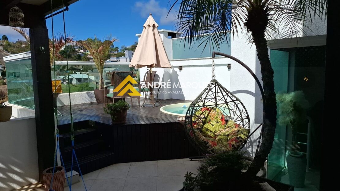 No segundo andar tem mais uma sala, escritório, lavanderia, área de festas externa privativa com deck e piscina.