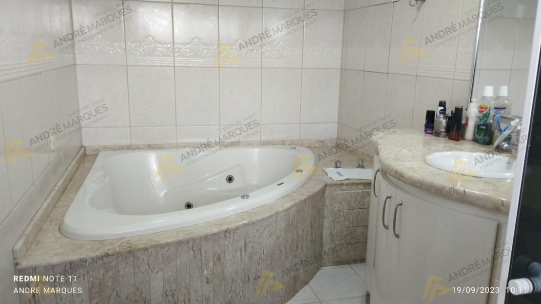 206 m² de área construída; Terreno com 450 m² todo cercado;, 01 suíte máster com hidromassagem e closet;, 02 dormitórios; 01 banheiro social; 02 lavabos;, Cozinha; Área de serviço; Despensa;