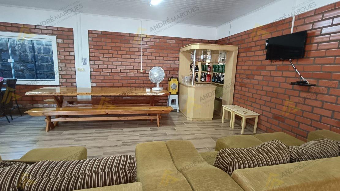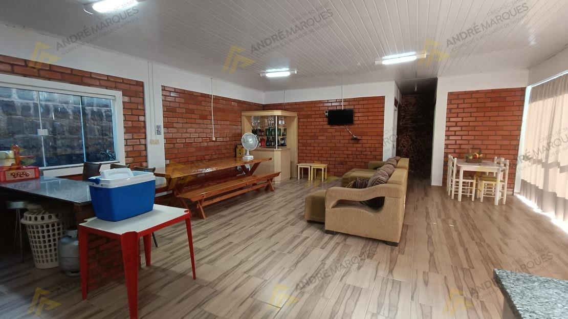 amplo salão de festas com 01 quarto, forno e churrasqueira.