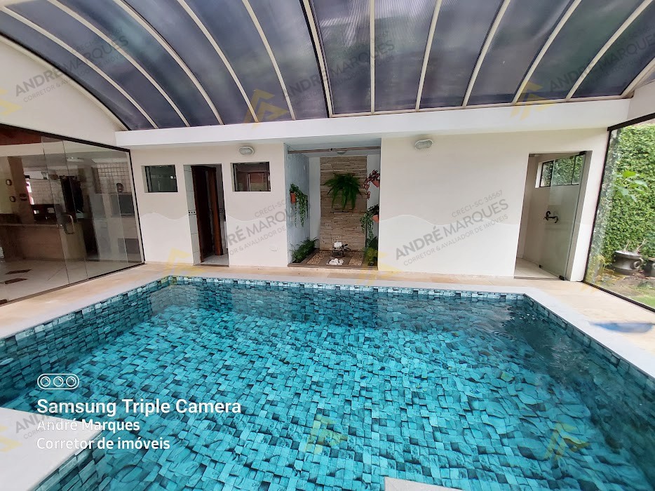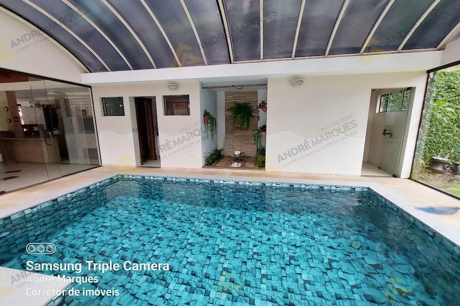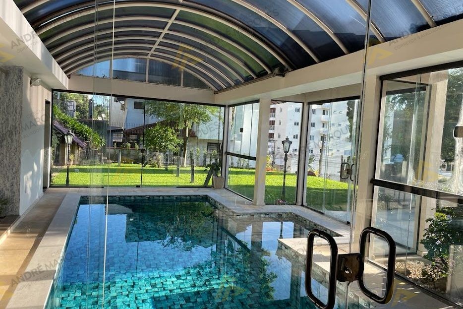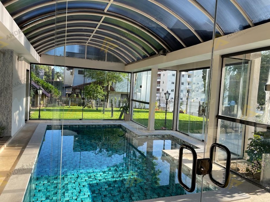 Piscina aquecida com energia solar e a gás, coberta com teto retrátil automatizado