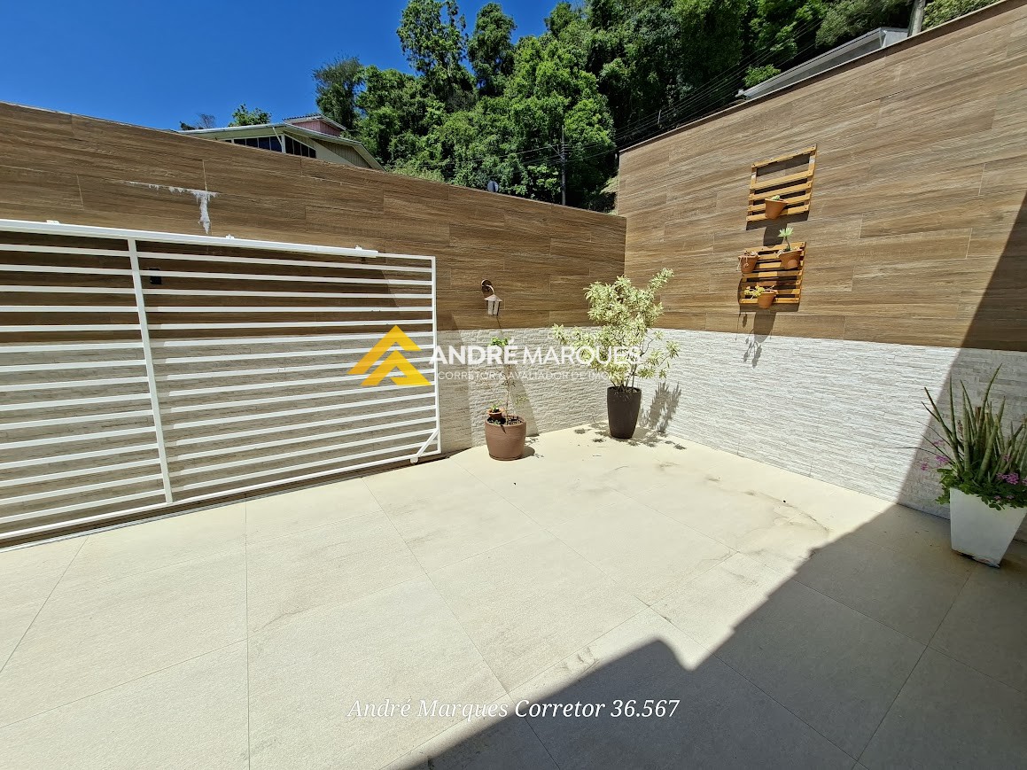 O imóvel tem Jardim externo com pergolado, Salão de festas integrado.