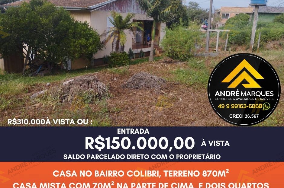 870m² com possibilidade para construir barracão ou até 4 moradias