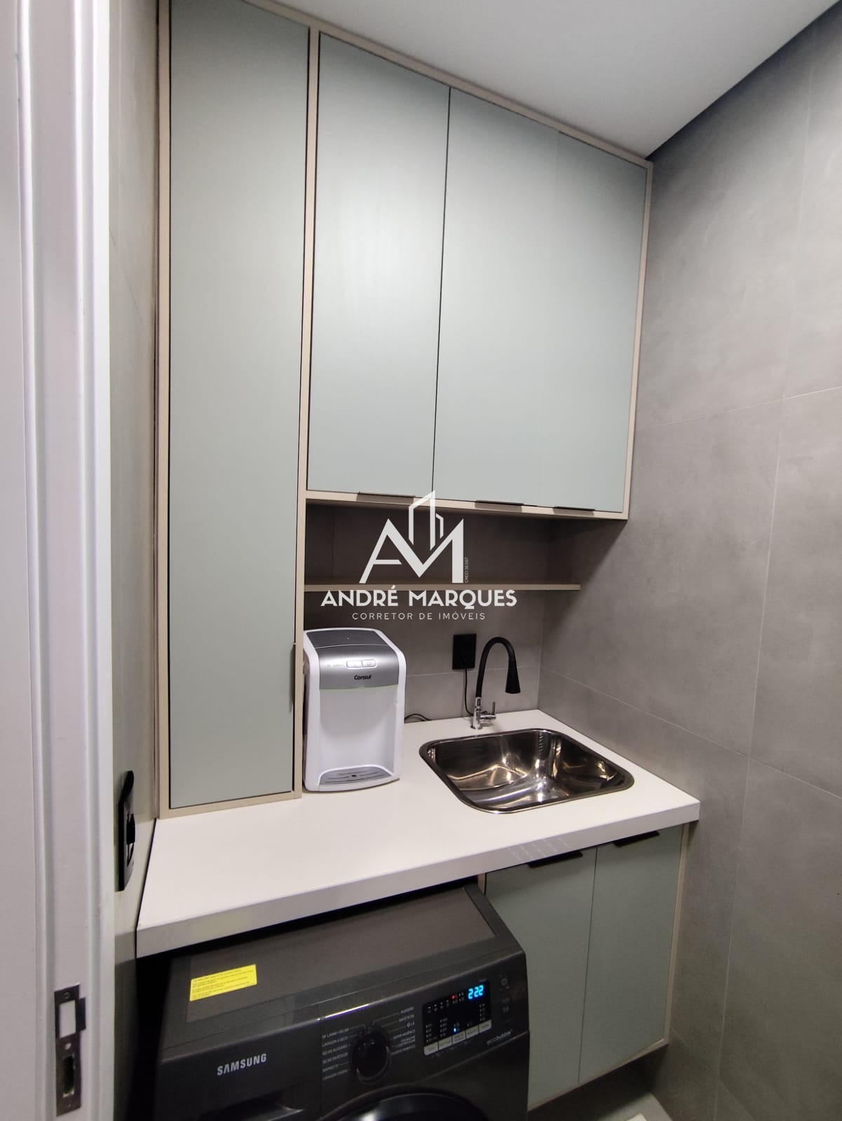 Móveis planejados em sala, cozinha, banheiro e lavanderia.