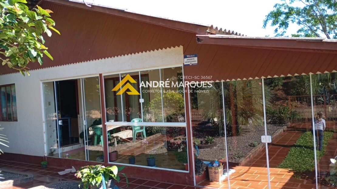 Casa principal com aproximadamente 110 m², com porão, 04 dormitórios, 02 banheiros.