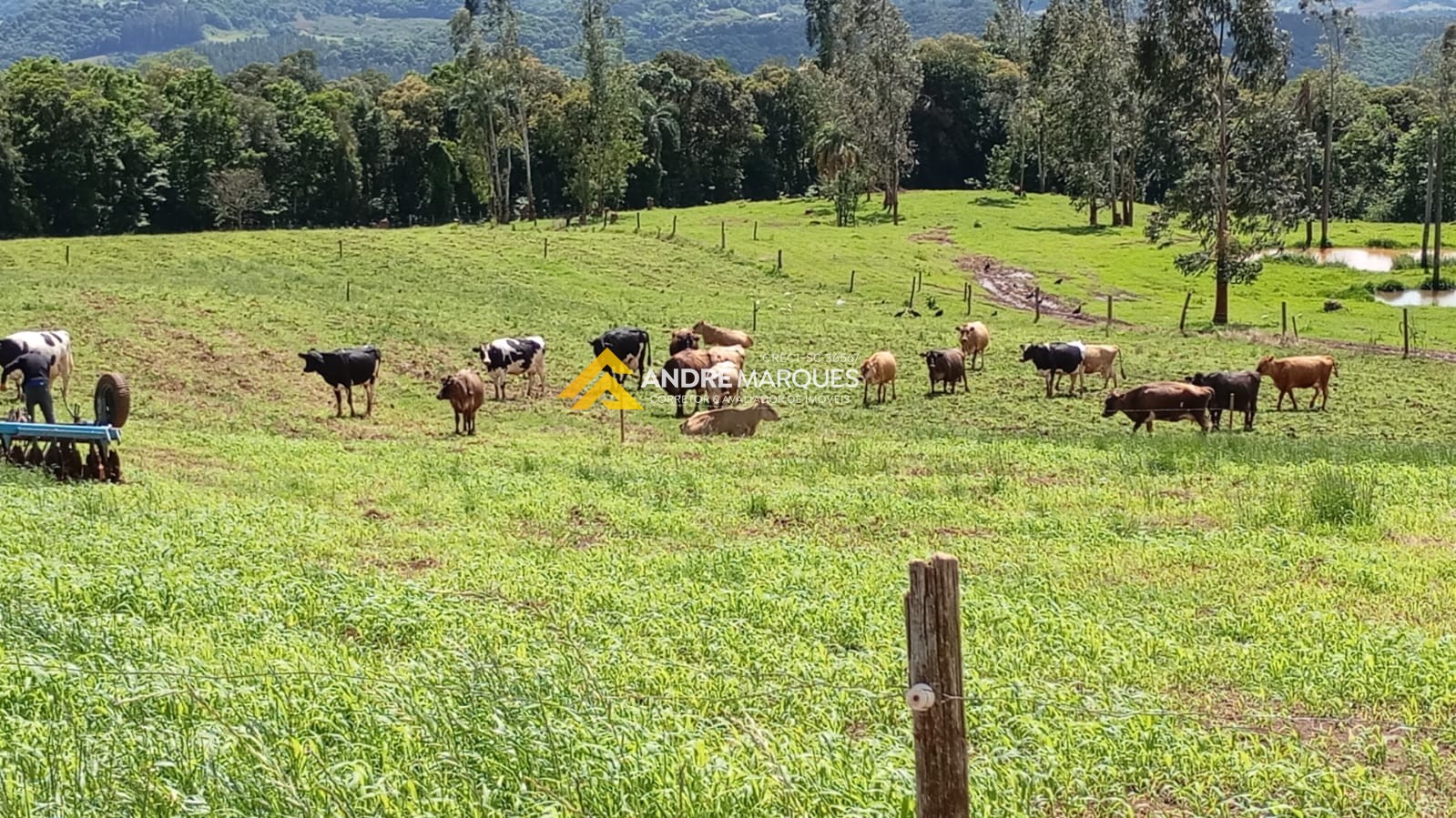Trator traçado e todos os implementos equipamentos necessários para o manejo da propriedade.