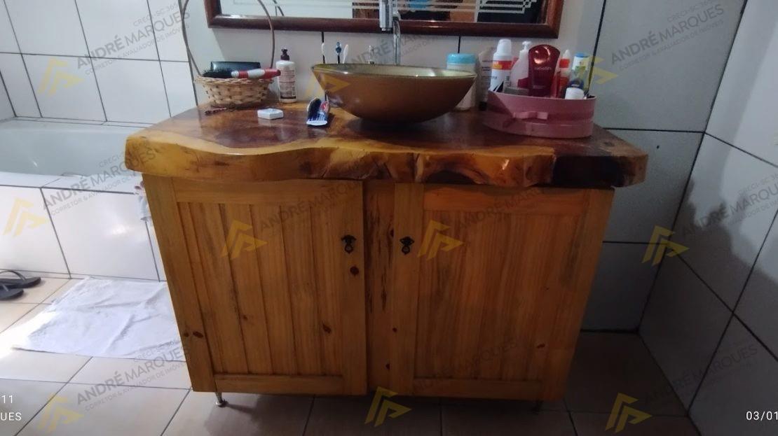 Casa mista com 216m², 4 quartos, 1 Suíte, 3 banheiros, cozinha com balcão para churrasqueira, fogão a lenha, grande pia em madeira de lei com duas cubas; garagem ampla. Casa de madeira reciclada e tratada com dois pisos, com 31,5m²,