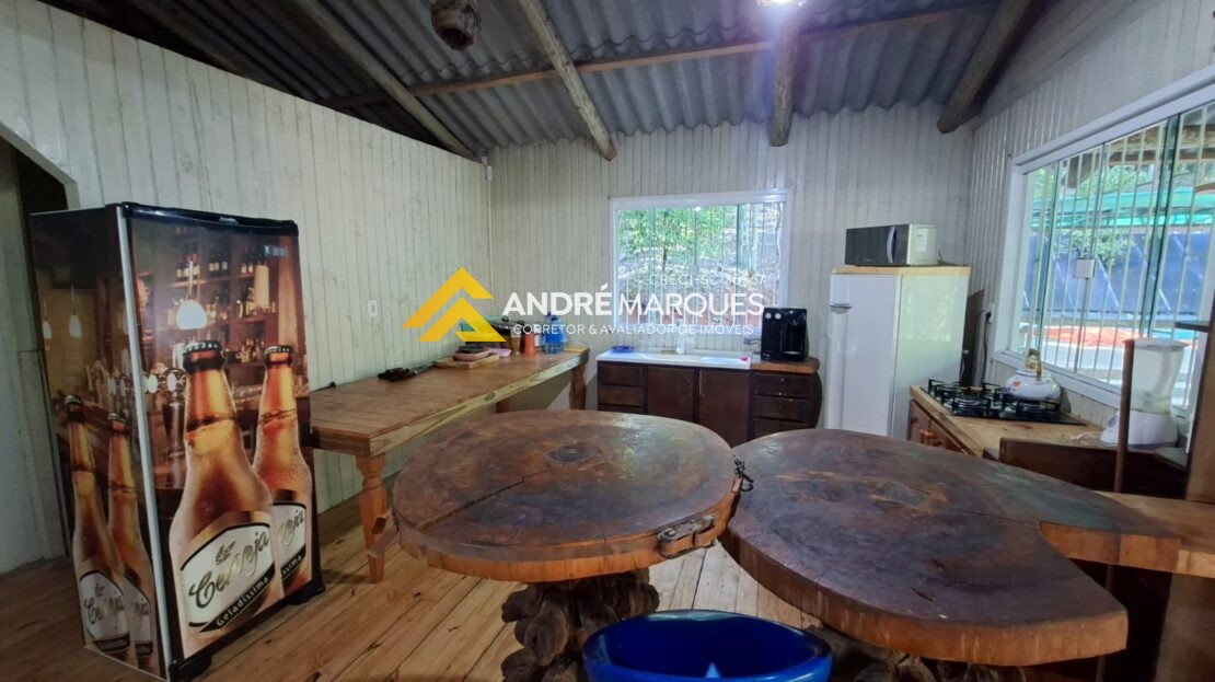 Casa 01 – com 70², 02 quartos, sala, cozinha, banheiro, móveis rústicos, lareira.