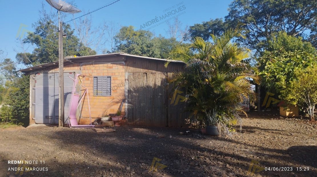 13.000m²(aproximadamente)Escriturado ( CNPJ) Casa com 90 m², barracão coberto de 22×12, com 5 metros de altura, campo de futebol cercado e com iluminação (refletores) Rede elétrica trifásica, Mais de 230 pés de erva mate, 30 árvores frutíferas enxertadas, 30 árvores frutíferas de bergamotas e laranjas, Plantação de cana de açúcar – Bananeiras, amoras e figueiras, água encanada de poço artesiano da comunidade