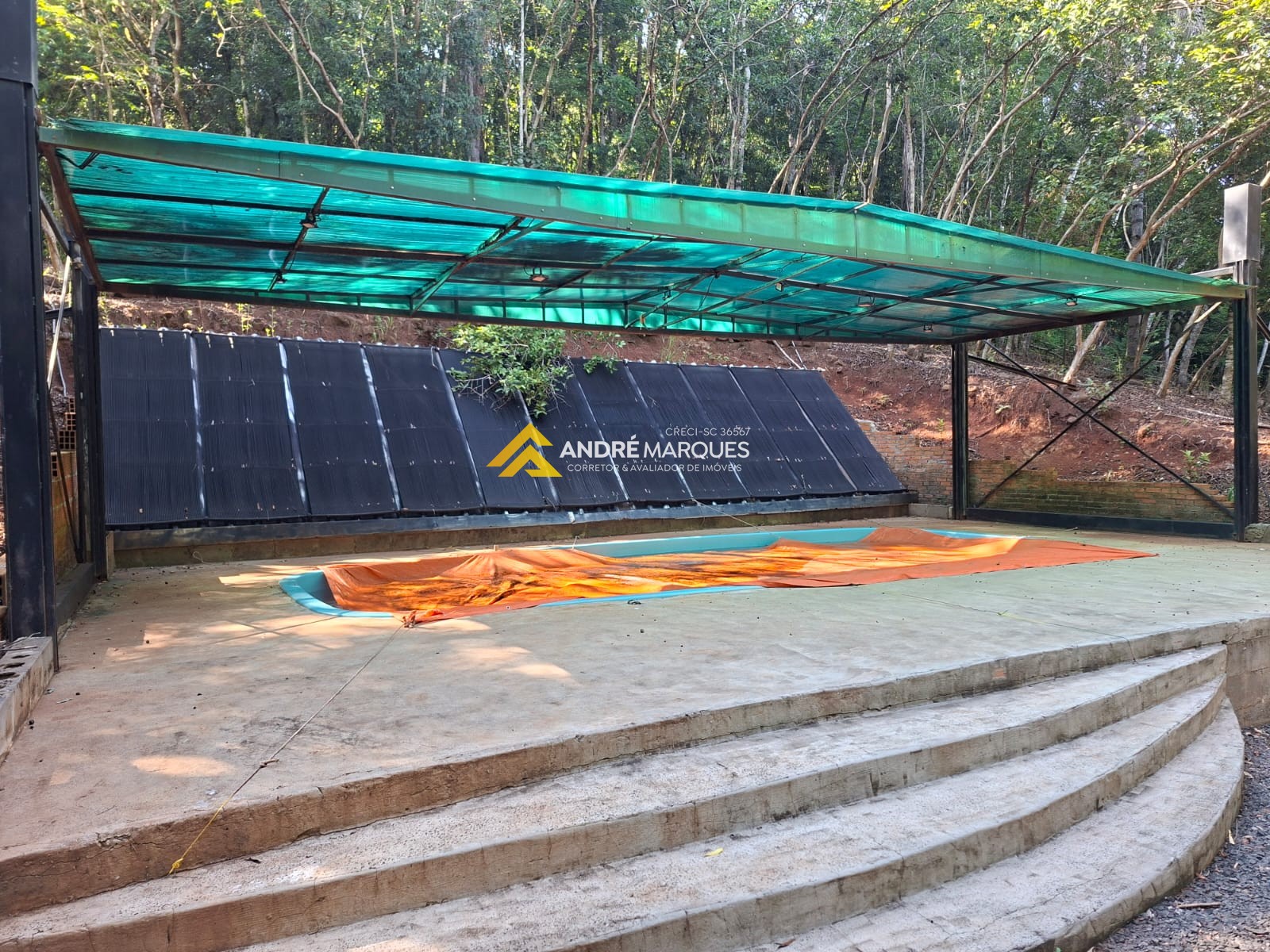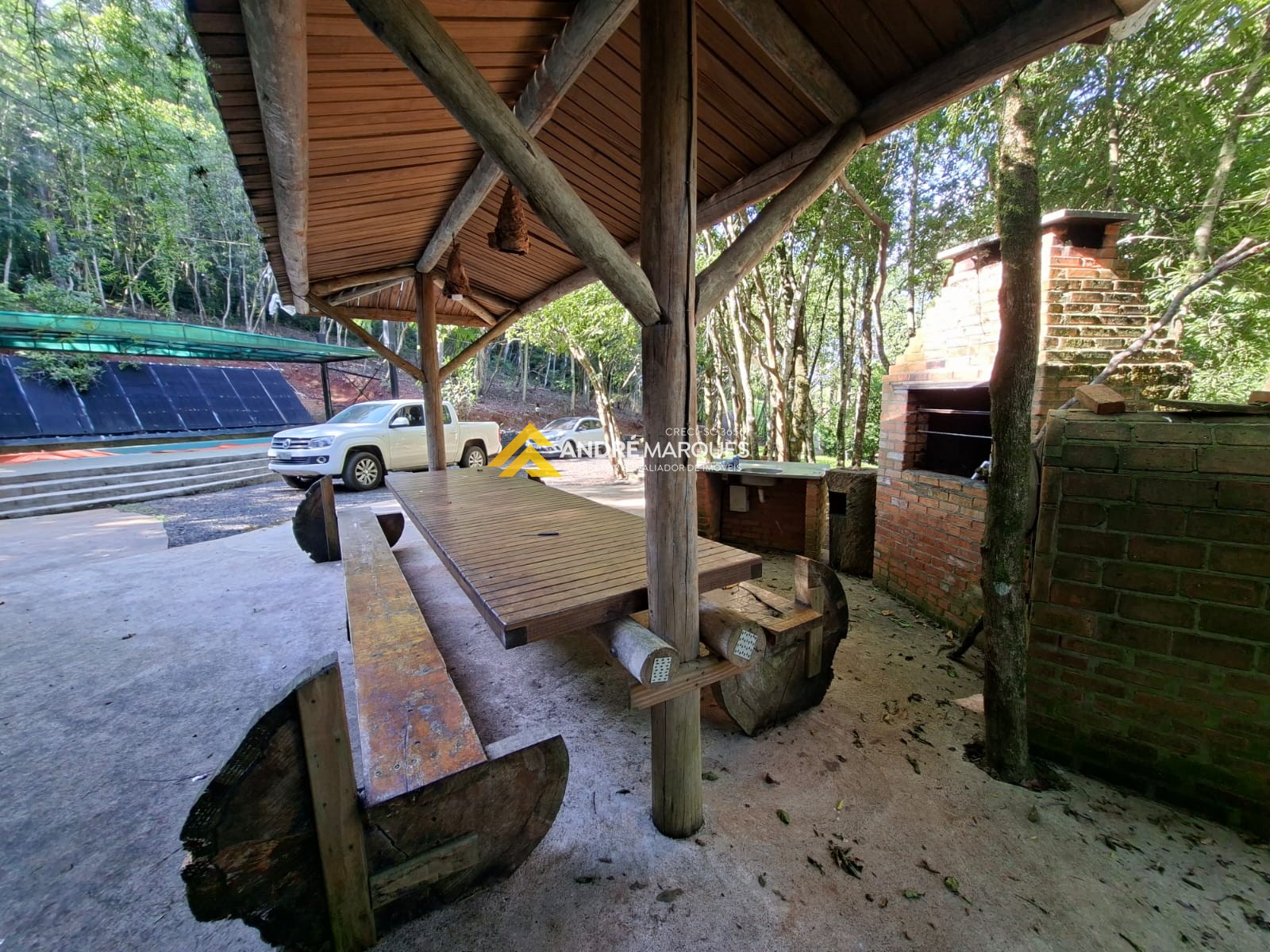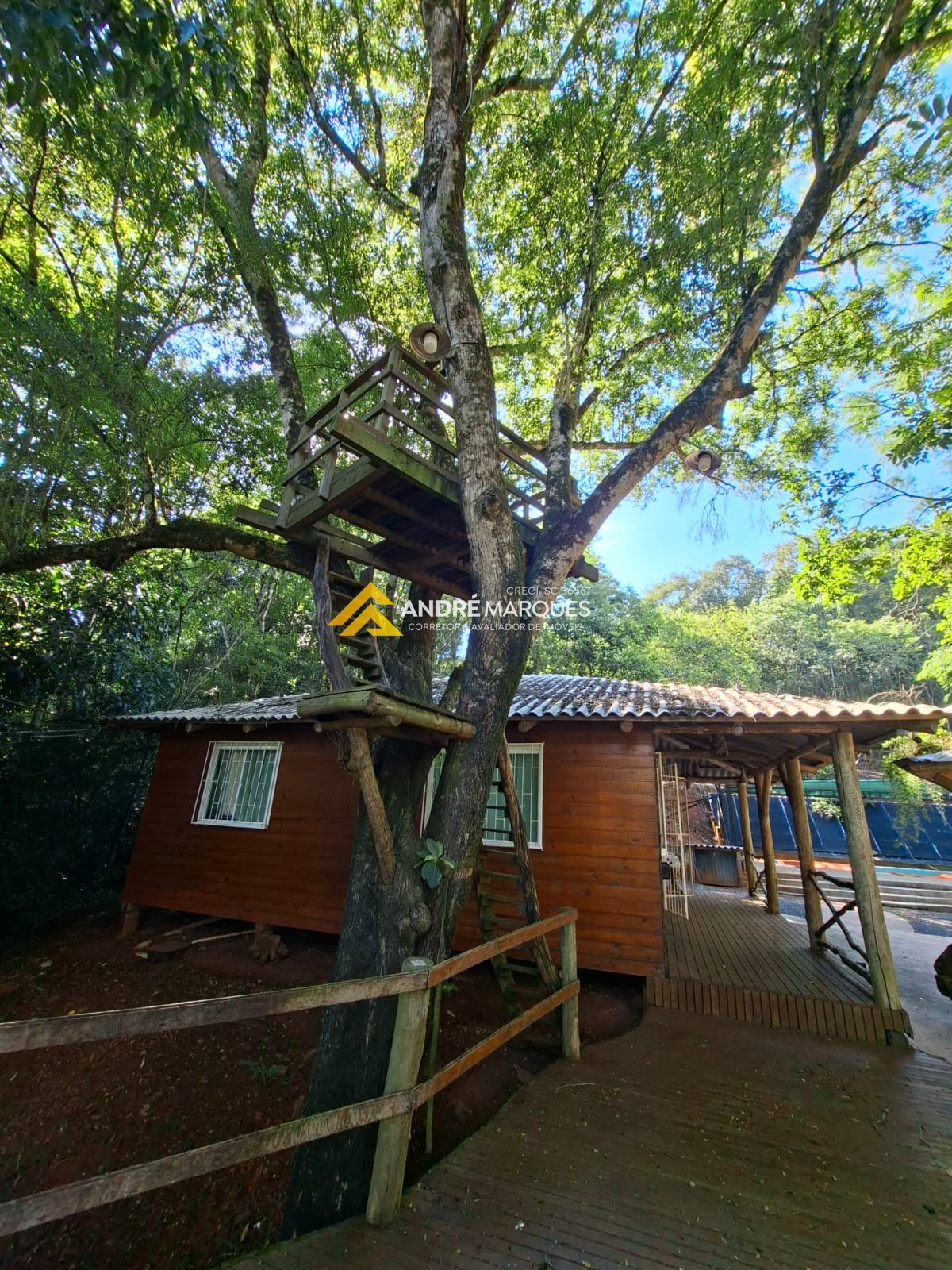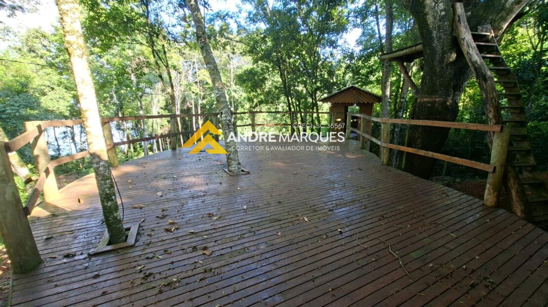 01 Piscina coberta com aquecimento solar, Deck de madeira com vista para o lago, casinha de boneca e casa na árvore.
