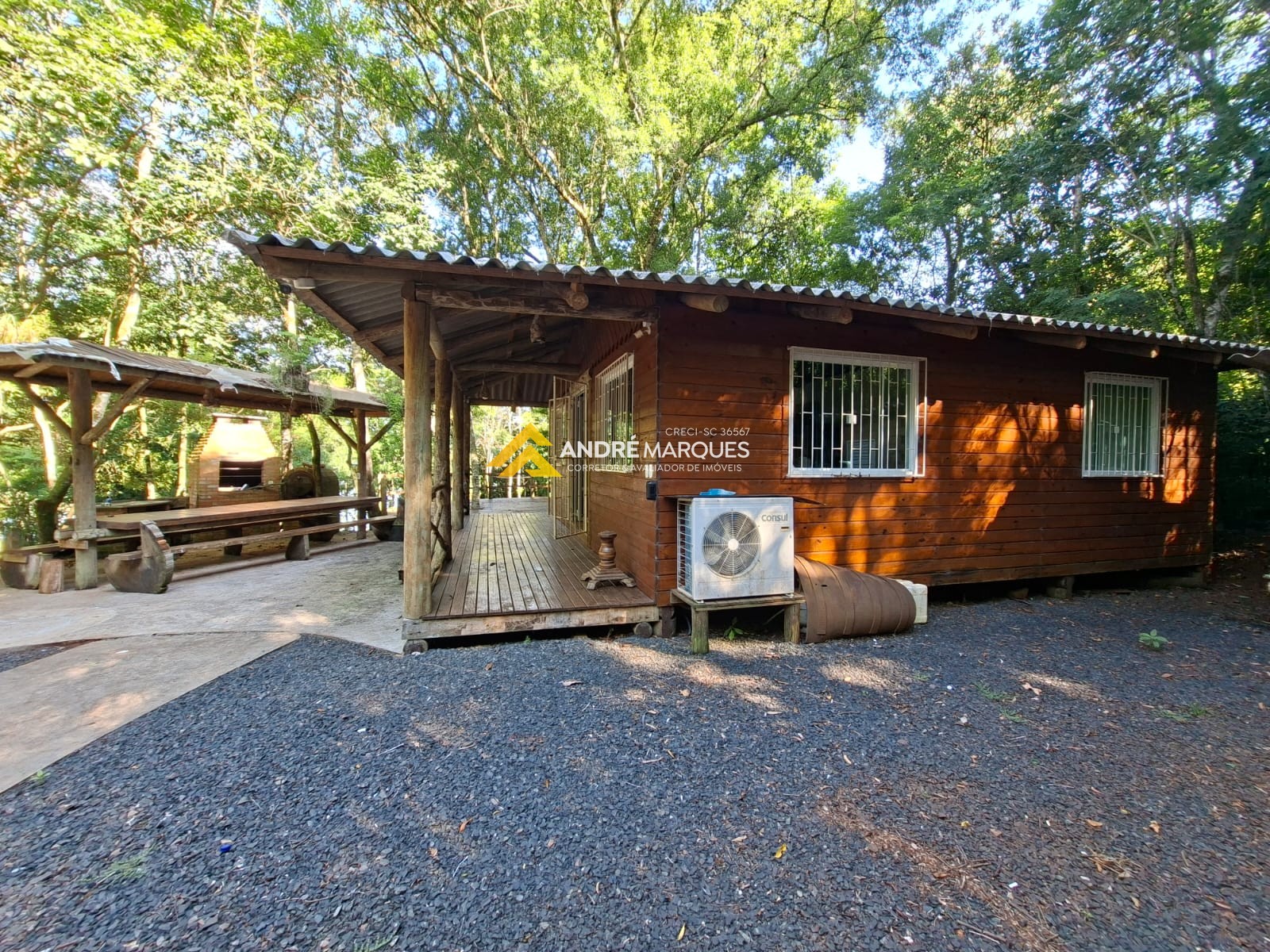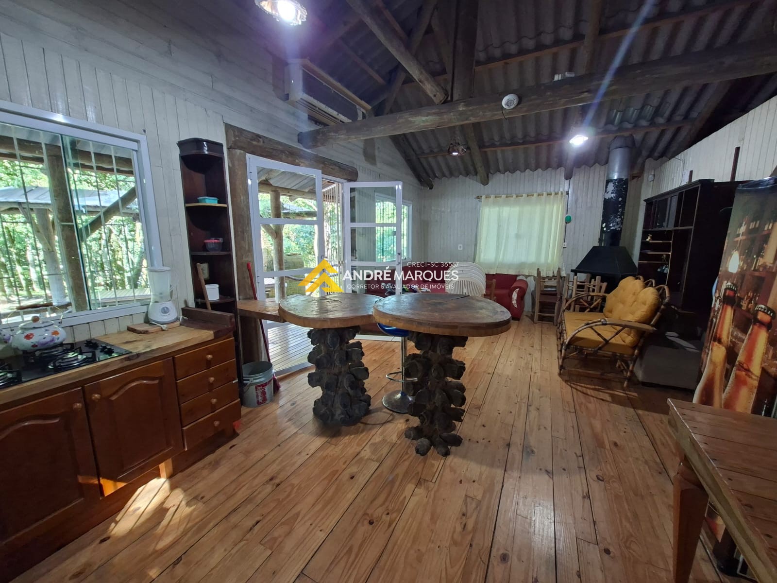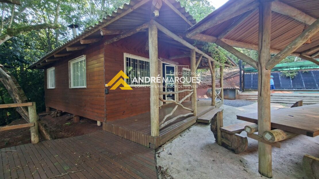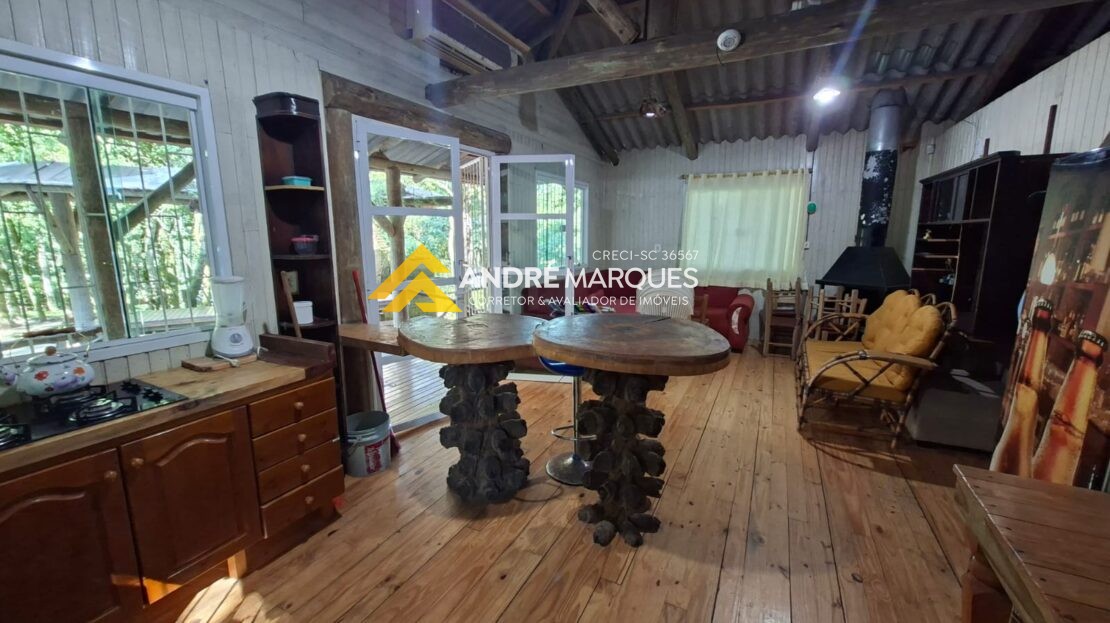 01 Casa com 70², 02 quartos, sala, cozinha, banheiro, móveis rústicos, lareira.