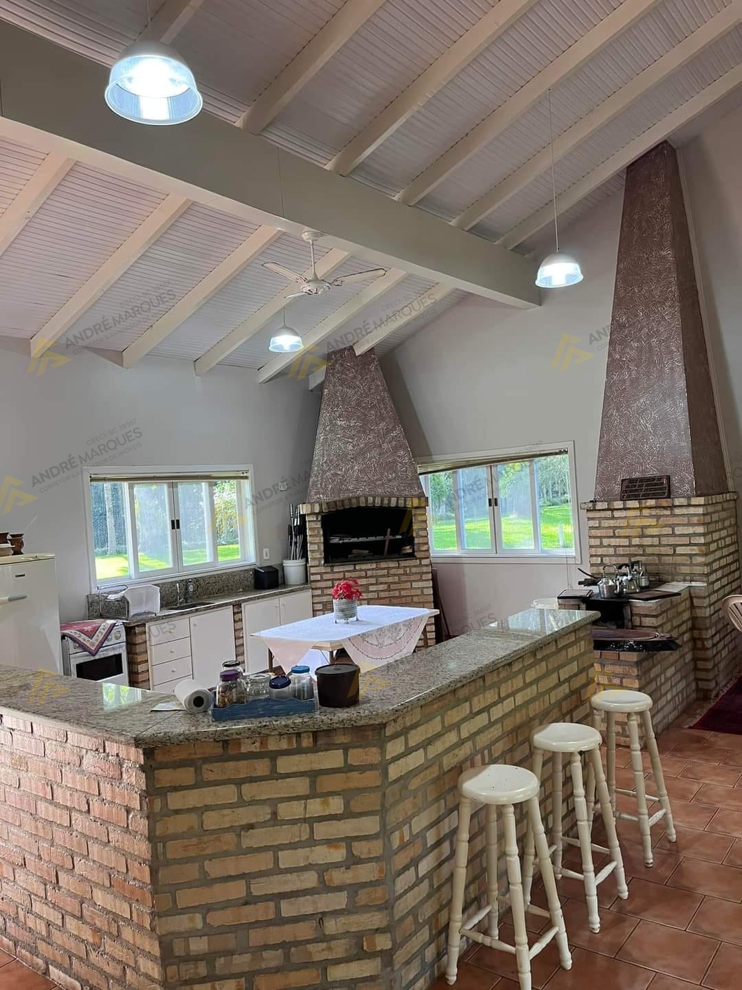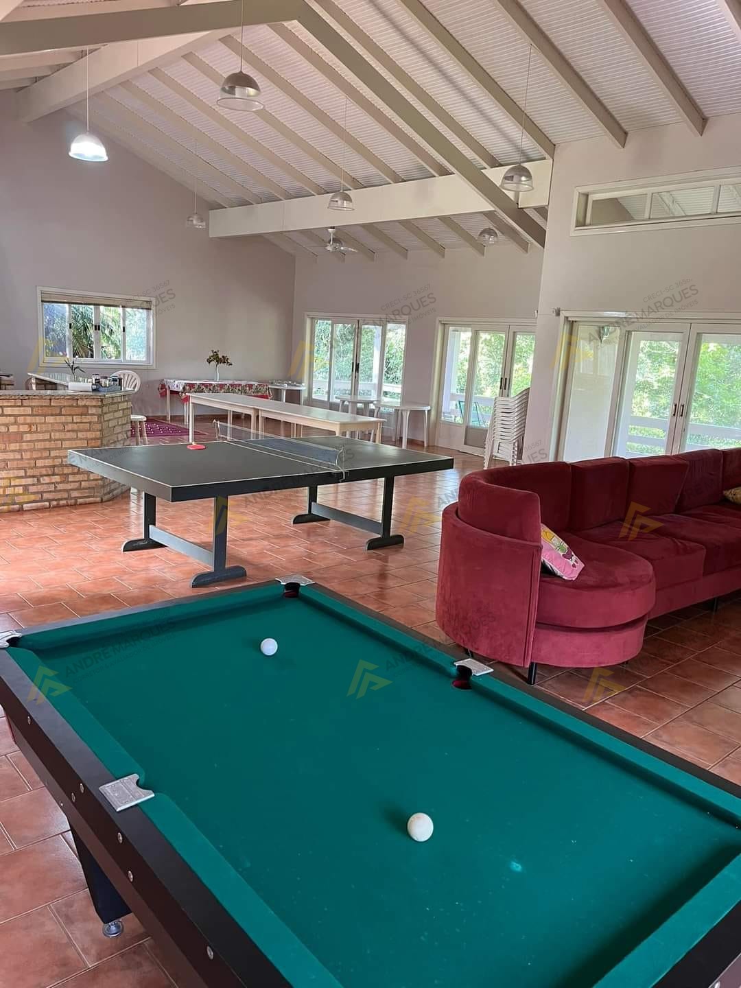 Ampla Sede social com sala de jogos, churrasqueira, forno, fogão a lenha, internet e TV com parabólica;