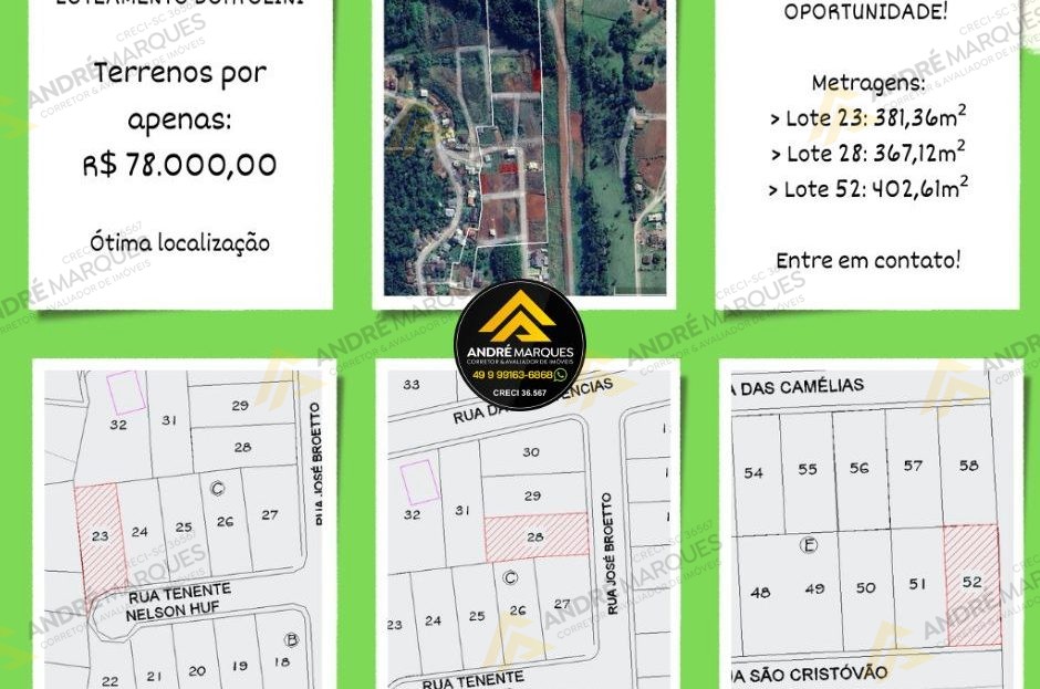 Terrenos a partir de 360m²; Ótima opção de investimento; Loteamento com toda infraestrutura necessária; Lotes matriculados; Liberados para construção imediata.